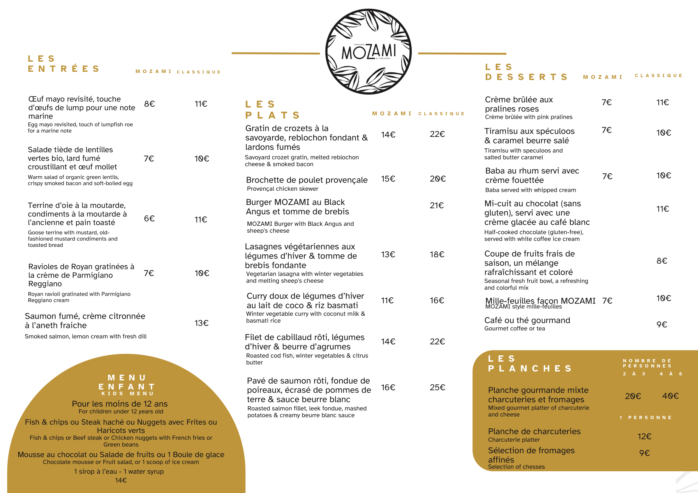 Bienvenue chez Mozami, un lieu où l'art de la table se mêle à l'esprit de partage. Venez découvrir une expérience culinaire unique, où chaque plat est une invitation à savourer, échange et célébrer ensemble.
